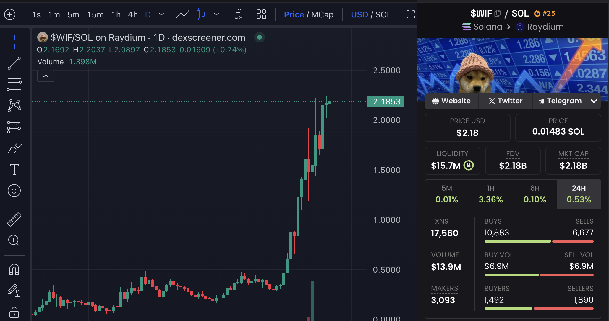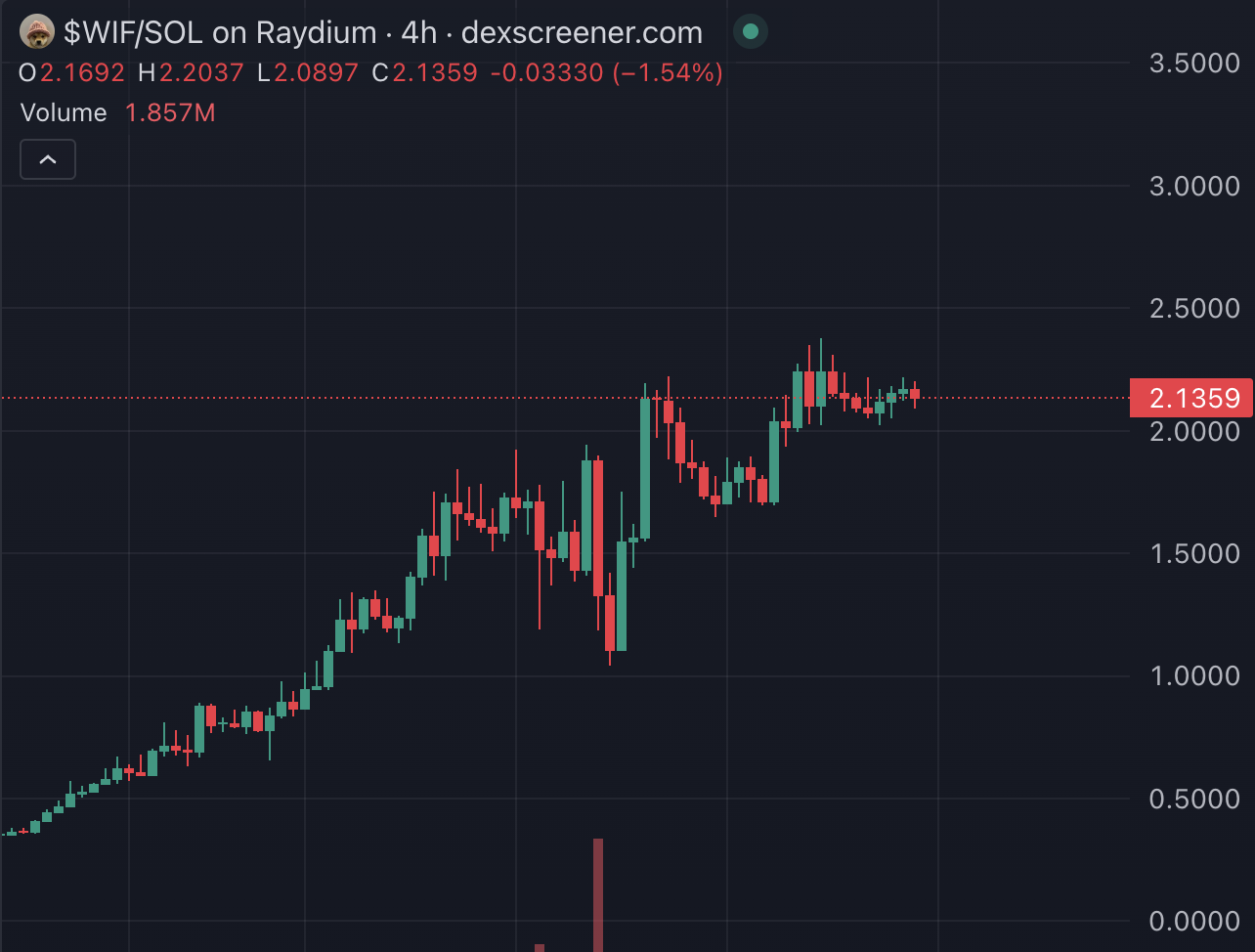 <figure><img src="https://826309119-files.gitbook.io/~/files/v0/b/gitbook-x-prod.appspot.com/o/spaces%2FbjWedrxqUayTzd84r4iA%2Fuploads%2FOJjCopHU1Q1xGznxE6Ww%2FScreenshot%202024-03-09%20at%209.52.42%20PM.png?alt=media&#x26;token=a88387d3-6849-40fe-ae24-fdced840115f" alt=""><figcaption><p>$2.00 with no end in sight. Chart looking prime <a href="https://emojipedia.org/eyes">👀</a></p></figcaption></figure>